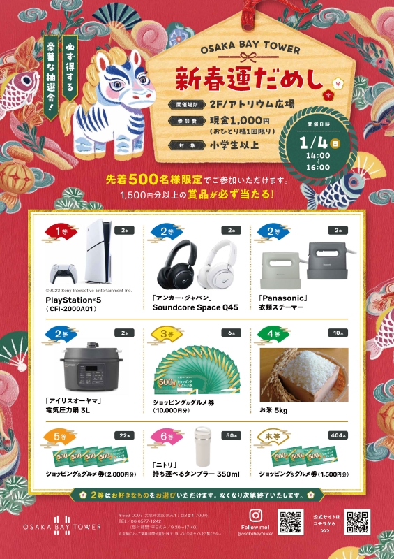 必ず得する豪華な抽選会!大阪ベイタワー『新春運だめし』のお知らせ