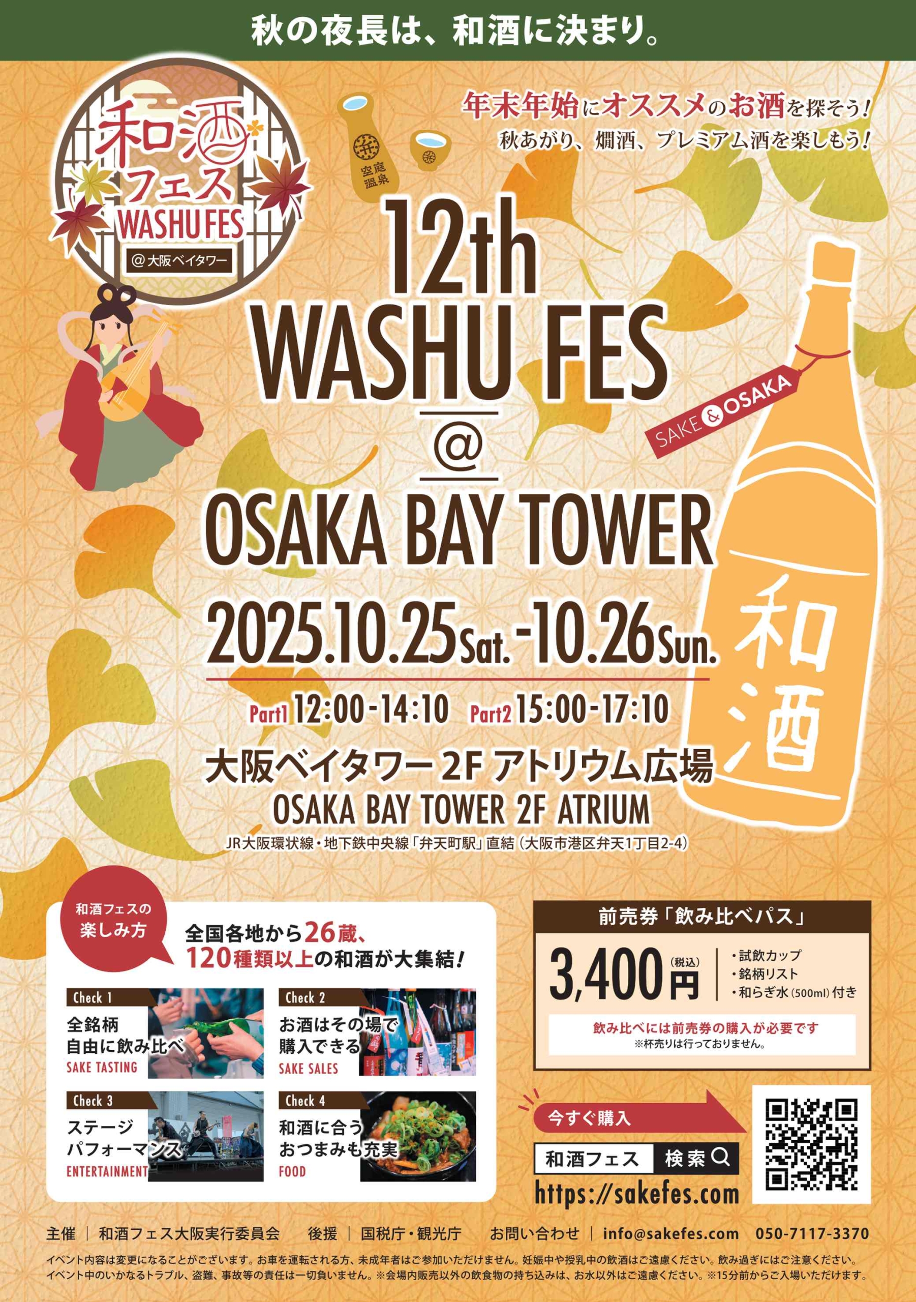 毎回多くのお客さまに好評をいただいている「和酒フェス@大阪ベイタワー」の第 12 回目が、10月25日(土)~26日(日)の2日間盛大に開催されます。