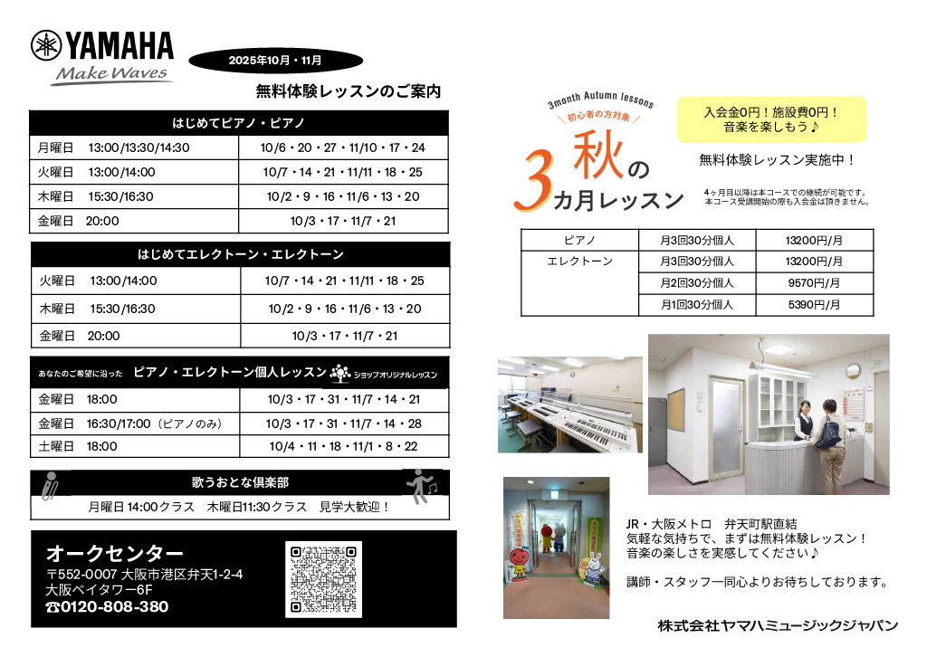 秋の無料体験レッスン 受講者募集中!
