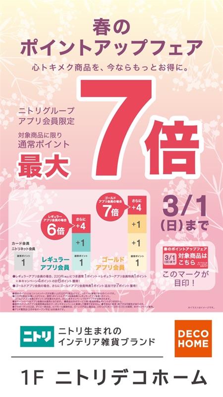 ニトリアプリ会員限定!春のポイントアップフェアを実施中!